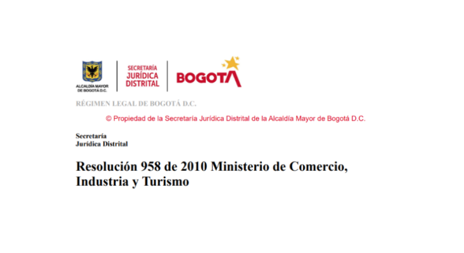 Resolución 958 de 2010 Ministerio de Comercio, Industria y Turismo